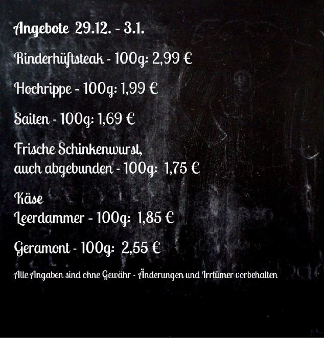 Mi. 31.12. 7,00 bis 12,00 / Fr. 2.1. 7,30 bis 12,30 und 14,30 bis 18,00